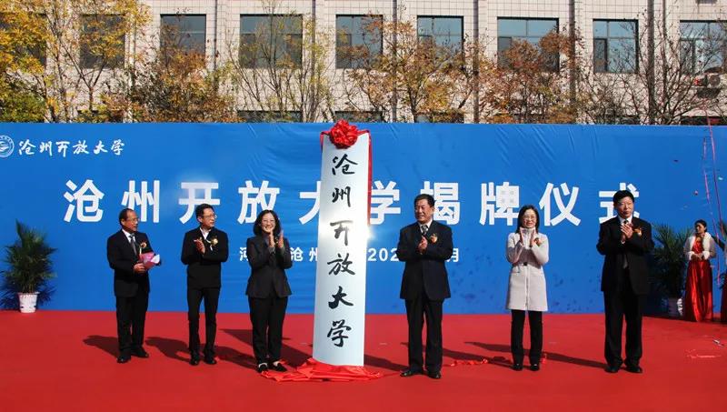 10月21日上午,滄州開放大學揭牌儀式正式舉行。河北開放大學黨委書記籍獻平,滄州市副市長王曉玲,滄州市政府副秘書長張巖,中共滄州市委教育工委副書記、滄州市教育局副局長代硯廣,滄州開放大學黨委書記楊奎志、滄州開放大學黨委副書記、校長崔學強出席儀式。儀式由崔學強主持。代硯廣宣讀了《河北省教育廳關于同意滄州廣播電視大學更名為滄州開放大學的批復》。