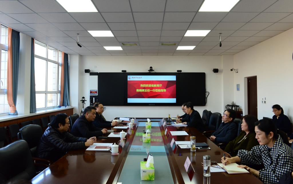11月24日下午,省教育廳教育技術中心主任陳曉輝一行4人來我校就平臺建設做專題調研。校長段潤保、副校長王琴出席調研會。信息技術中心、宣傳統戰部、繼續教育學院負責人及相關人員參加會議。調研會由王琴主持。