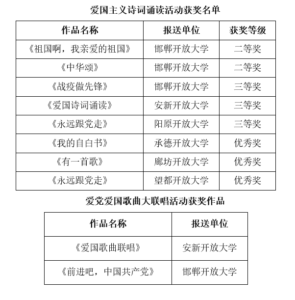 近日,國家開放大學公布了慶祝建黨100周年學生主題教育系列活動評選結果,我省體系內有六所市、縣校共10個作品獲獎,省校獲評“優秀組織獎”。
