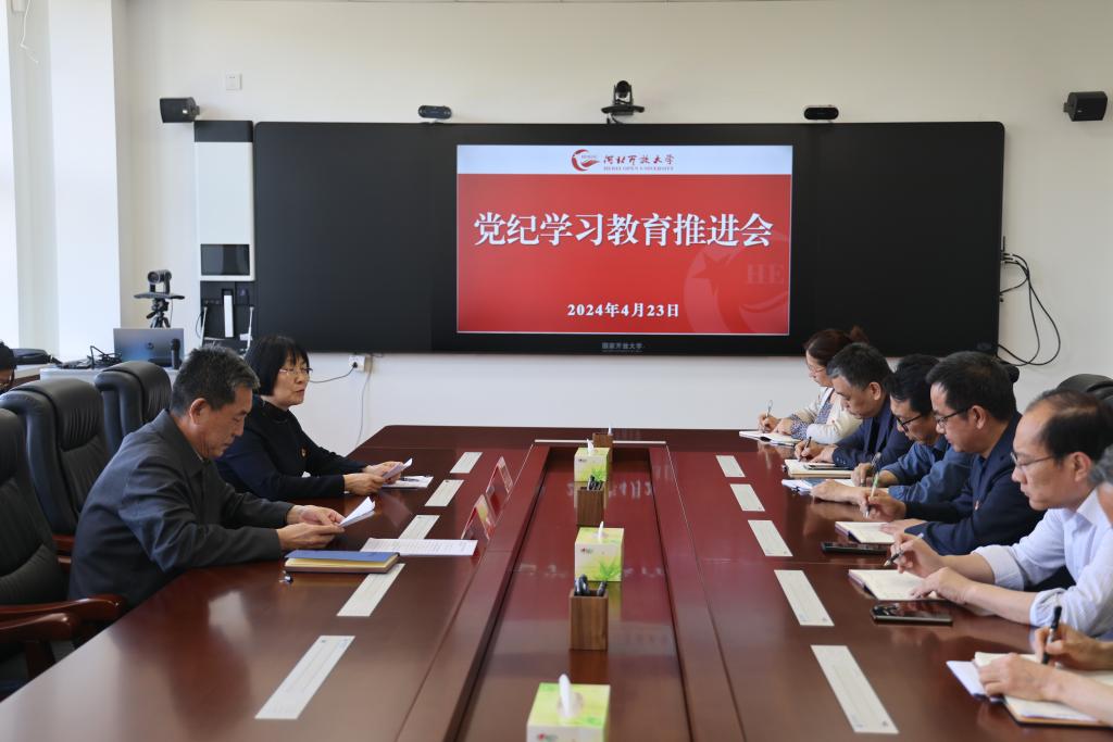為貫徹落實中央及省委部署要求,推動學校黨紀學習教育走深走實,4月23日下午,我校召開黨紀學習教育推進會。黨紀學習教育工作專班成員和各黨支部書記參加會議,黨委書記籍獻平出席會議并發表講話,黨委常委、紀委書記白璟主持會議。
