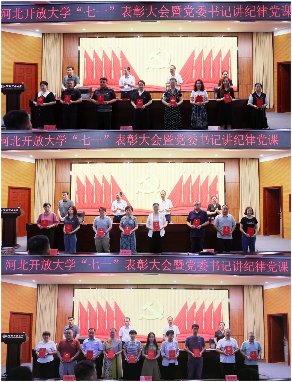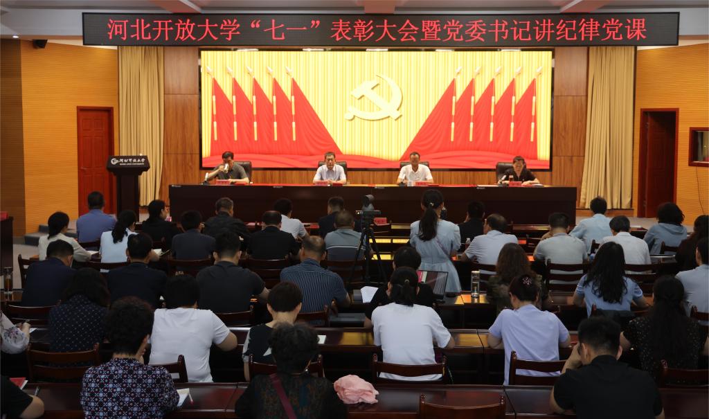 大會在莊嚴嘹亮的國歌聲中拉開帷幕。黨委常委、副校長陳軍平宣讀了《河北開放大學“光榮在黨50年”黨員名單》,黨委常委、副校長王琴宣讀了《中共河北開放大學委員會關于“七一”表彰優秀共產黨員的決定》授予于冰等29名同志“優秀共產黨員”稱號并頒獎。