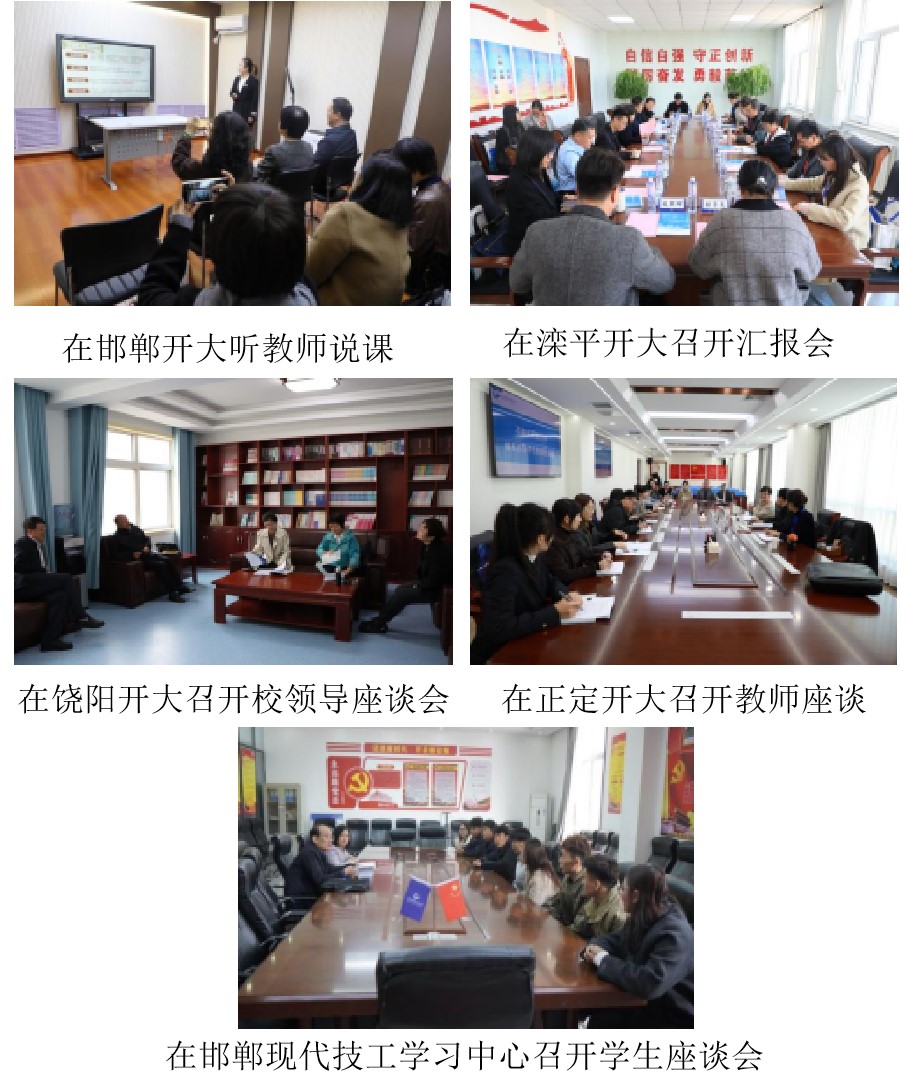 在實地評估階段,專家組主要采用“聽、看、查、議”四種方式,對照《河北開放大學體系辦學評估指標》,從辦學定位、體系辦學、條件保障、學歷教育、非學歷教育、質量管理、創(chuàng)新與服務等7個方面進行全面評估。