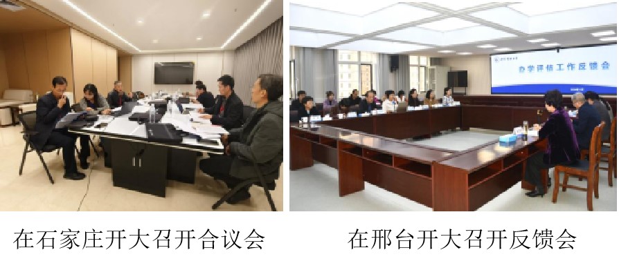 本次辦學評估,專家組共計遠程聽評課70門,隨機抽取90名學生、90名教師和管理人員進行了電話訪談,召開工作匯報會15場,召開校領導座談會15場,召開了15場154名學生參加的座談會、15場173名教師和管理人員參加的座談會,隨機抽取了12名教師現(xiàn)場說課,查閱了1139盒支撐材料,召開反饋會6場,對正定、昌黎、灤平、涉縣、威縣、饒陽6所縣級開放大學,以及秦皇島崇德學習中心、邯鄲現(xiàn)代技工學習中心、邢臺理工學習中心3所學習中心進行了延伸考察。