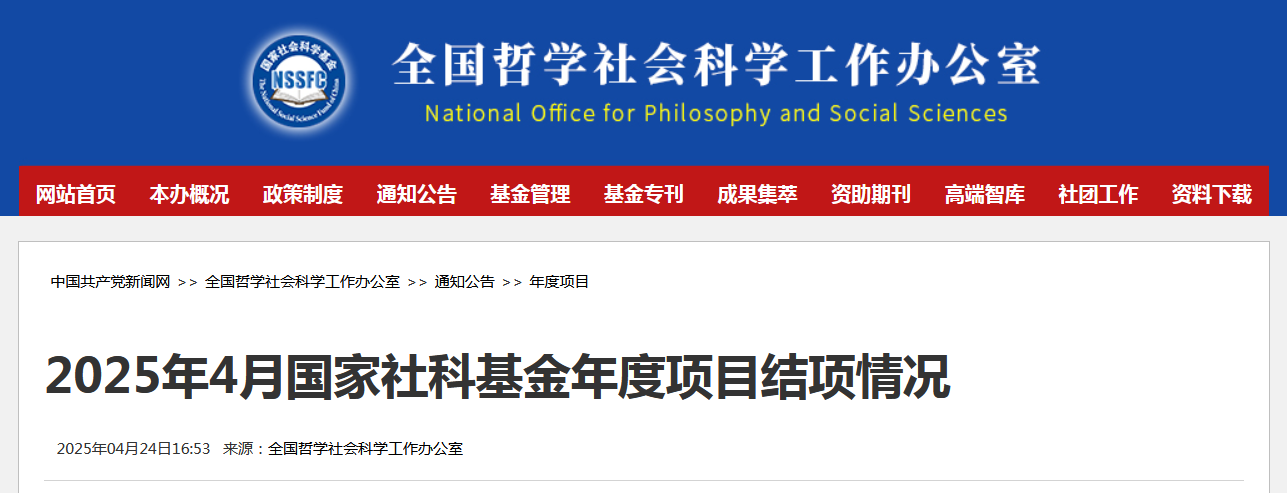 近日,全國哲學社會科學工作辦公室公布了2025年4月國家社科基金年度項目結項情況,我校黨委副書記、校長田學斌研究員主持的國家社科基金年度項目“京津冀產業協同發展利益共享與補償機制”順利通過結項,結項成果被鑒定為“優秀”等級。
