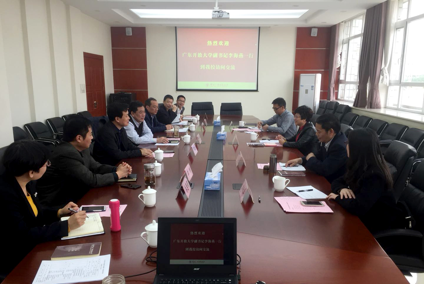 3月28日,廣東開(kāi)放大學(xué)黨委副書(shū)記李海燕一行四人到我校考察,校長(zhǎng)鄧明立、黨委副書(shū)記籍獻(xiàn)平熱情接待了來(lái)訪嘉賓,雙方進(jìn)行了座談交流。