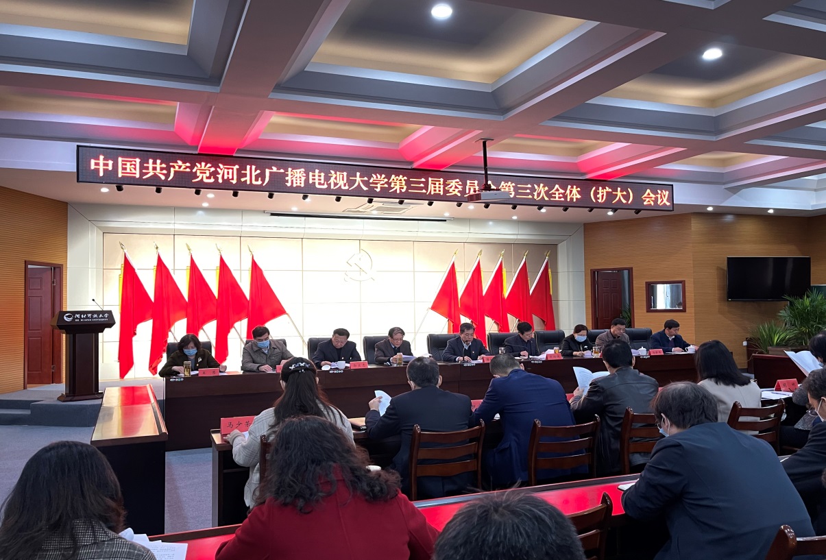 3月12日上午,中國共產黨河北廣播電視大學第三屆委員會第三次全體會議在莊嚴的國歌聲中拉開序幕。學校全體黨委委員出席會議,紀委委員、處級干部、教職工代表列席會議,黨委副書記、校長段潤保主持會議,黨委書記籍獻平代表學校黨委常委會作工作報告。