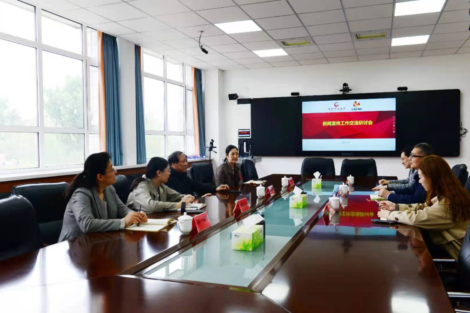 為進一步加強和改進學校新聞宣傳工作,提升學校宣傳工作水平,為學校事業轉型發展拓展和夯實思想文化陣地,為黨史學習教育營造良好輿論氛圍,4月21日上午,我校特邀長城新媒體集團聯合舉辦了新聞宣傳工作交流研討會,校黨委副書記岳俊輝出席會議并講話,長城新媒體集團冀云編輯部主任于軍濤、編輯部副主任賀宏偉、編輯李冰玉,宣傳統戰部部分人員參加了會議。