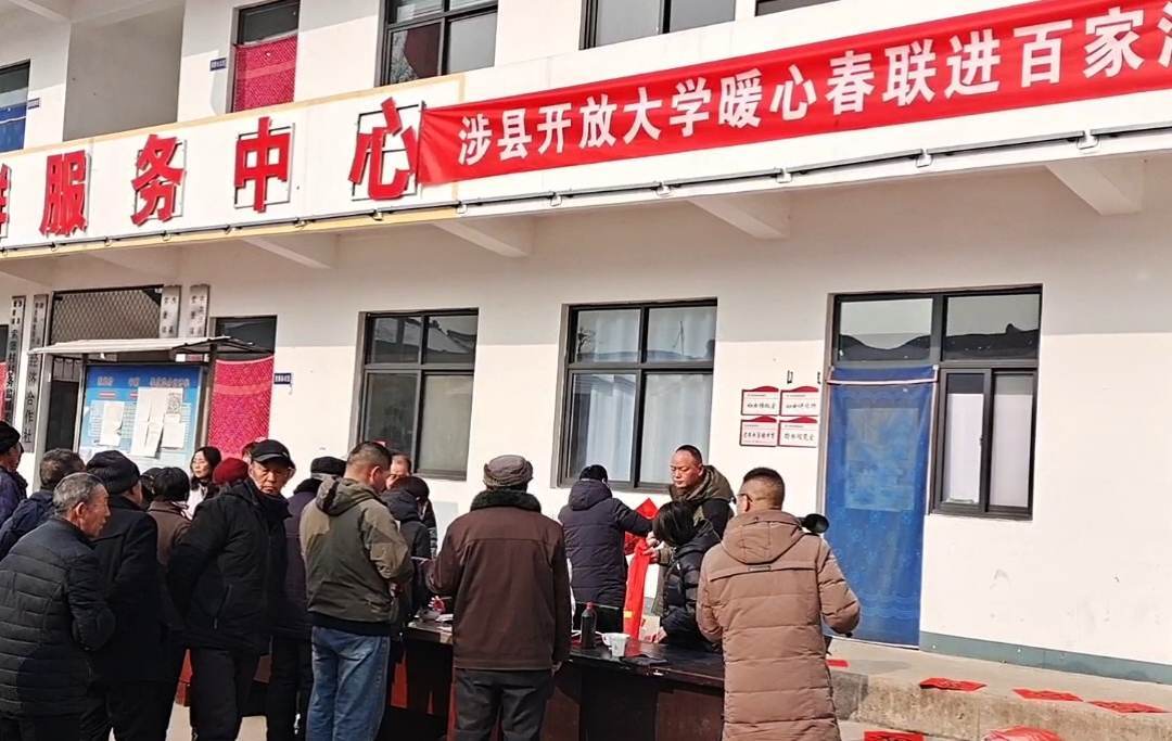 2024年2月6日,涉縣開放大學到社區(老年)教育索堡村教學點開展“暖心春聯進百家”暨“書法名家下基層”活動。本次活動共書寫贈送春聯800余副,并邀請涉縣書協副主席侯少東為教學點學員進行現場授課。