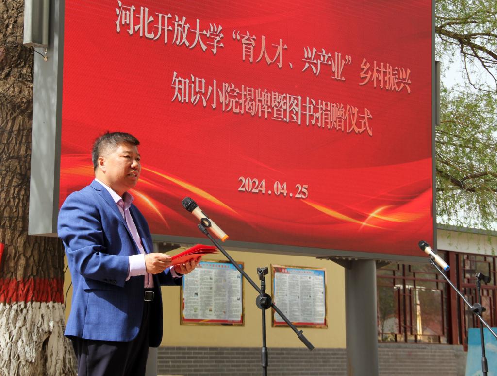 2024年4月25日,在張家口市蔚縣縣委、縣政府的大力支持下,河北開放大學(xué)“育人才、興產(chǎn)業(yè)”鄉(xiāng)村振興知識小院揭牌儀式在蔚縣宋家莊鎮(zhèn)鄭家莊村成功舉行。河北開放大學(xué)副校長陳軍平,河北省雜交谷子創(chuàng)新技術(shù)中心主任趙治海,張家口開放大學(xué)黨委書記楊汝明、校長張宏文出席儀式。