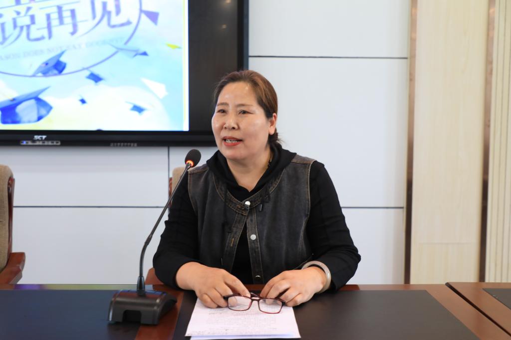 教師代表王素清對相處了兩年多時間的同學們深情寄語。她希望在未來的新征程上,同學們海納百川、胸懷寬廣,實現立志、做事、做人的更高追求,用不懈的奮斗、超強的毅力去譜寫人生最美的華章。