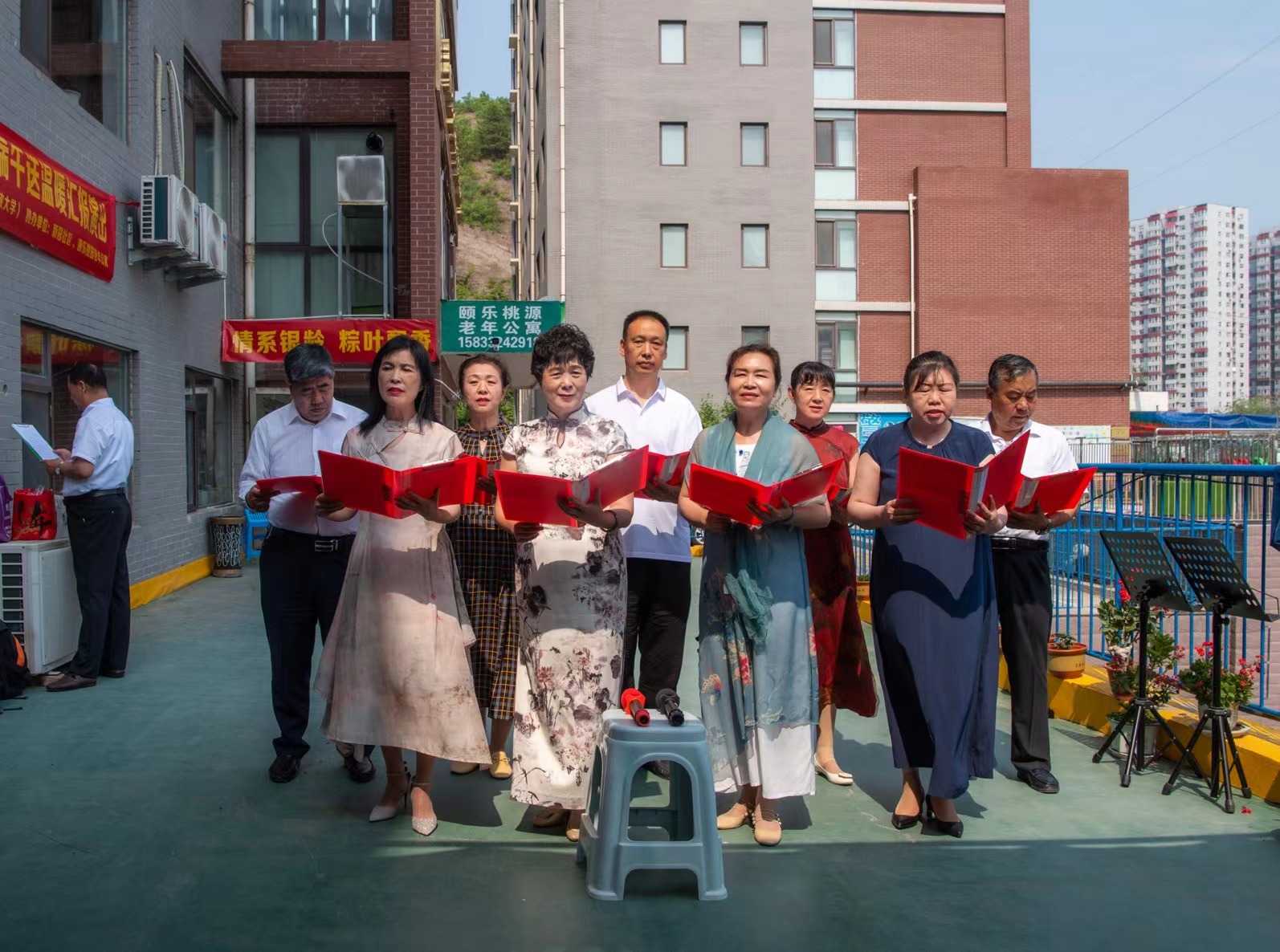 活動最后,全體演出人員及在場觀眾共同合唱了《我的祖國》以及《沒有共產黨就沒有新中國》,歌聲激昂、情感真摯,表達了對黨的感恩之情和對國家的熱愛。老年公寓的老年人臉上洋溢著幸福的笑容,他們紛紛表示,這樣的活動不僅讓他們度過了一個愉快的端午節,也讓他們感受到了社會的關愛和尊重。
