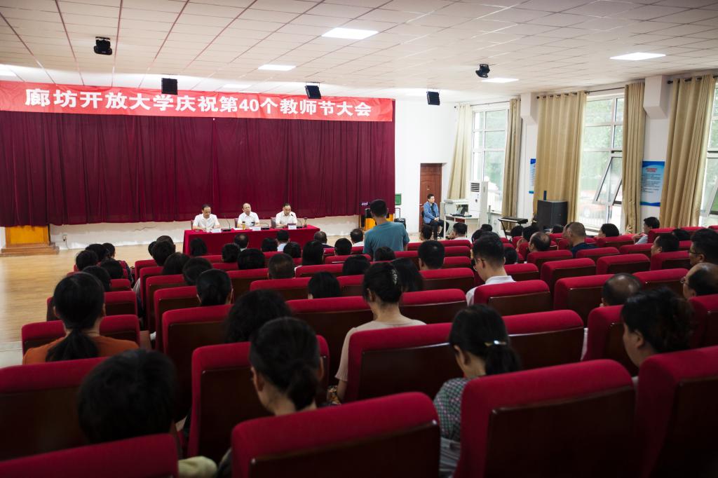 9月9日,在即將迎來第四十個教師節之際,廊坊開放大學舉行了慶祝第四十個教師節大會,黨委書記馬利國,黨委委員、副校長姚東升,黨委委員、副校長呂中戰,以及全體教職工共計115人參加了慶祝大會。會議由姚東升主持。