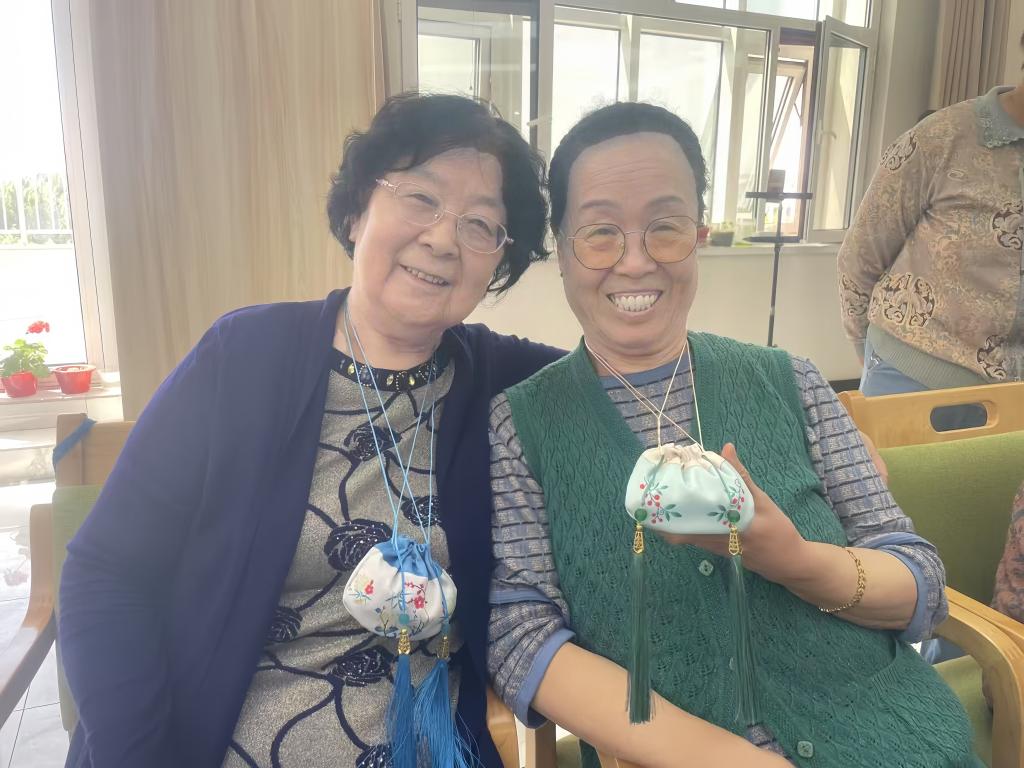 活動伊始,第一黨支部書記萬曉結合中醫藥文化,介紹了香囊的歷史淵源、文化寓意以及制作方法,老年朋友們聽得津津有味,沉浸在中華傳統文化的深厚魅力之中。制作環節,大家熱情高漲,紛紛動手實踐。支部黨員與團員采用“分組結對”的形式,幫助老人們穿針引線、縫制香包、填充香料、裝飾點綴,現場歡聲笑語不斷,其樂融融。