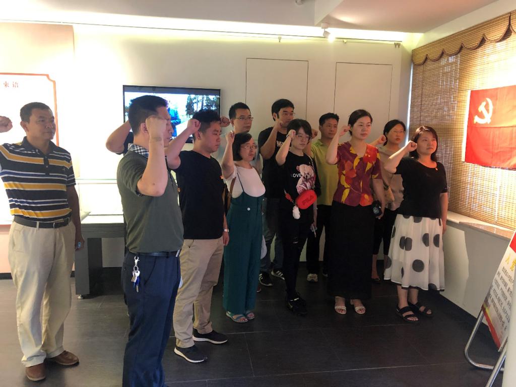 為慶祝中國共產(chǎn)黨成立99周年,進一步學(xué)習(xí)貫徹黨的十九大精神,增強黨員意識,激勵廣大黨員堅定理想信念,7月9日,迎著濛濛細雨,保定電大第四黨支部全體黨員前往保定留法勤工儉學(xué)運動紀(jì)念館,開展主題教育活動,接受革命歷史傳統(tǒng)教育,回顧黨的光輝歷程,謳歌黨的豐功偉績,重溫入黨誓詞。