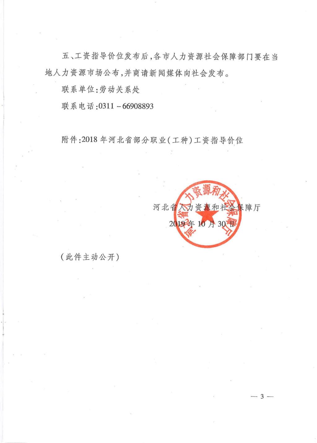 關(guān)于發(fā)布2018年河北省部分職業(yè)(工種)工資指導(dǎo)價(jià)位的通知