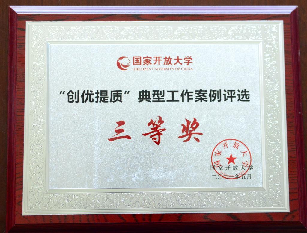 本次會議中,我校報送的《修煉內功重規范嚴抓系統促提質》榮獲國家開放大學“創優提質”典型工作案例評選三等獎。該案例總結了近年來我校在健全學校內部質量保證體系、抓系統辦學質量等方面的各項改革舉措,充分展示了改革舉措落地生花取得的良好成效。這是我校更名以來獲得的與辦學質量相關的重要獎項,是對我校嚴抓系統辦學質量舉措的肯定。