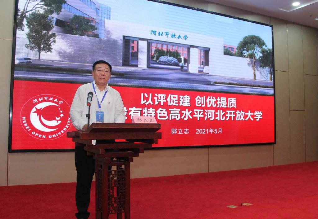 在經驗分享環節,郭立志發表了題為《以評促建創優提質建設有特色高水平河北開放大學》的講話。郭立志從守初心、亮決心、有信心三方面闡述了我校勇于參評的原因,介紹了我校自第三次黨代會以來,通過調機構、理職責、提效能、抓干部、抓系統、提質量、抓落實、轉作風等大刀闊斧改革,以實現高質量發展的初心;勇于正視問題、刀刃向內,以抓質量為河北開放大學良好開端、扎根燕趙大地認真辦教育的堅定決心;良好的辦學情況和系統建設情況在申請評估試點中,賦予了我校相當程度的信心。另外,郭立志分享了我校參與評估試點工作的過程。他指出,我校自申請評估試點到完成評估僅僅用了44天,在時間緊、任務重的情況下,迎評工作組織周密,各部門干勁十足,全系統配合默契,出色的完成了評估任務,展現了河北開大人勇于直面壓力和挑戰、全力以赴攻堅克難的優秀實力,展現了河北開大系統凝心聚力、高效聯動的團結精神,為學校更名轉型送上了一份奠基厚禮。他表示,河北開放大學將運用好此次評估精神成果和物質成果,以評促建設、以評促改革、以評促規范、以評創特色,為實現“建設有特色高水平開放大學”的目標繼續前進。