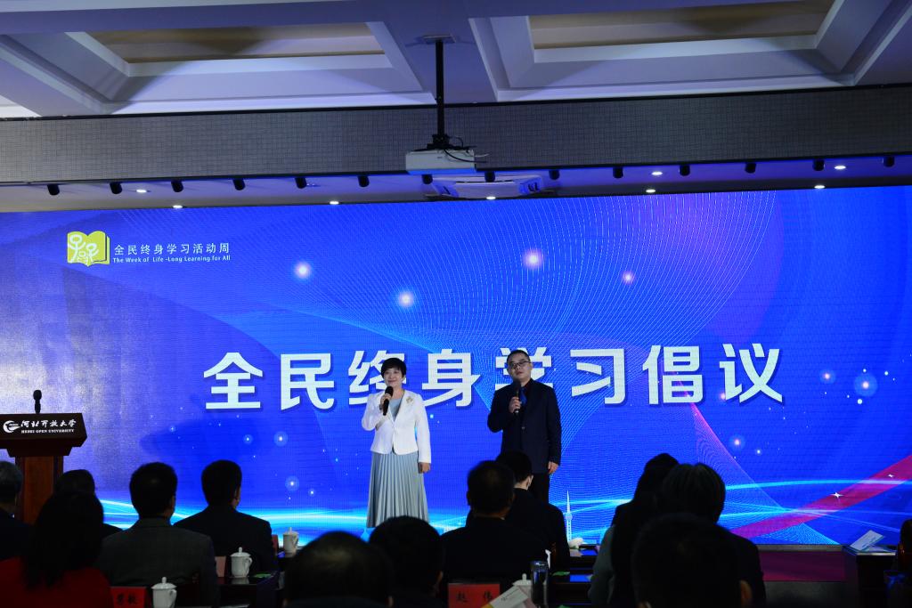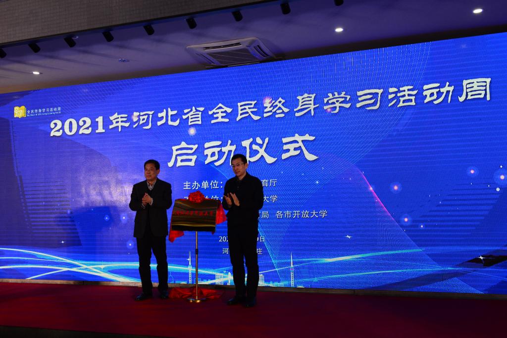 12月9日,以“慶建黨百年華誕 譜終身學(xué)習(xí)新篇”為主題的2021年河北省全民終身學(xué)習(xí)活動周啟動儀式在河北開放大學(xué)舉行。啟動儀式由省教育廳主辦,河北開放大學(xué)承辦,各市教育局、各市開放大學(xué)協(xié)辦。省委宣傳部、省人社廳、省民政廳、省文旅廳、省委老干部局、省婦聯(lián)、團省委、省老齡辦等部門有關(guān)同志,省教育廳高教處、職成處(老年教育處)有關(guān)負責(zé)同志,部分駐石高校、中職學(xué)校領(lǐng)導(dǎo),省成人教育協(xié)會、省社區(qū)教育指導(dǎo)中心負責(zé)同志,河北開放大學(xué)領(lǐng)導(dǎo)班子成員、正處級干部和獲獎?wù)叽韰⒓觾x式。河北省教育廳副廳長張春生出席儀式并講話。河北開放大學(xué)黨委書記籍獻平,黨委副書記、校長段潤保出席儀式,黨委常委、副校長陳軍平主持啟動儀式。
